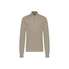 This sweater features a modern mid-height zip and a slim fit. The long sleeves and ribbed cuffs create a classic look. The sweater has a circular knit structure and comes in a neutral light brown hue. The practical, no-print design offers versatile styling options.