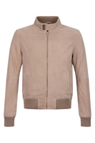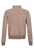 This taupe- colored Dean jacket is from the Alter Ego brand. Its classic look makes it timeless. Ribbed cuffs on the sleeves and hips provide extra comfort. The jacket features a full-length zipper, and the zipper at the neck can be closed with a button.