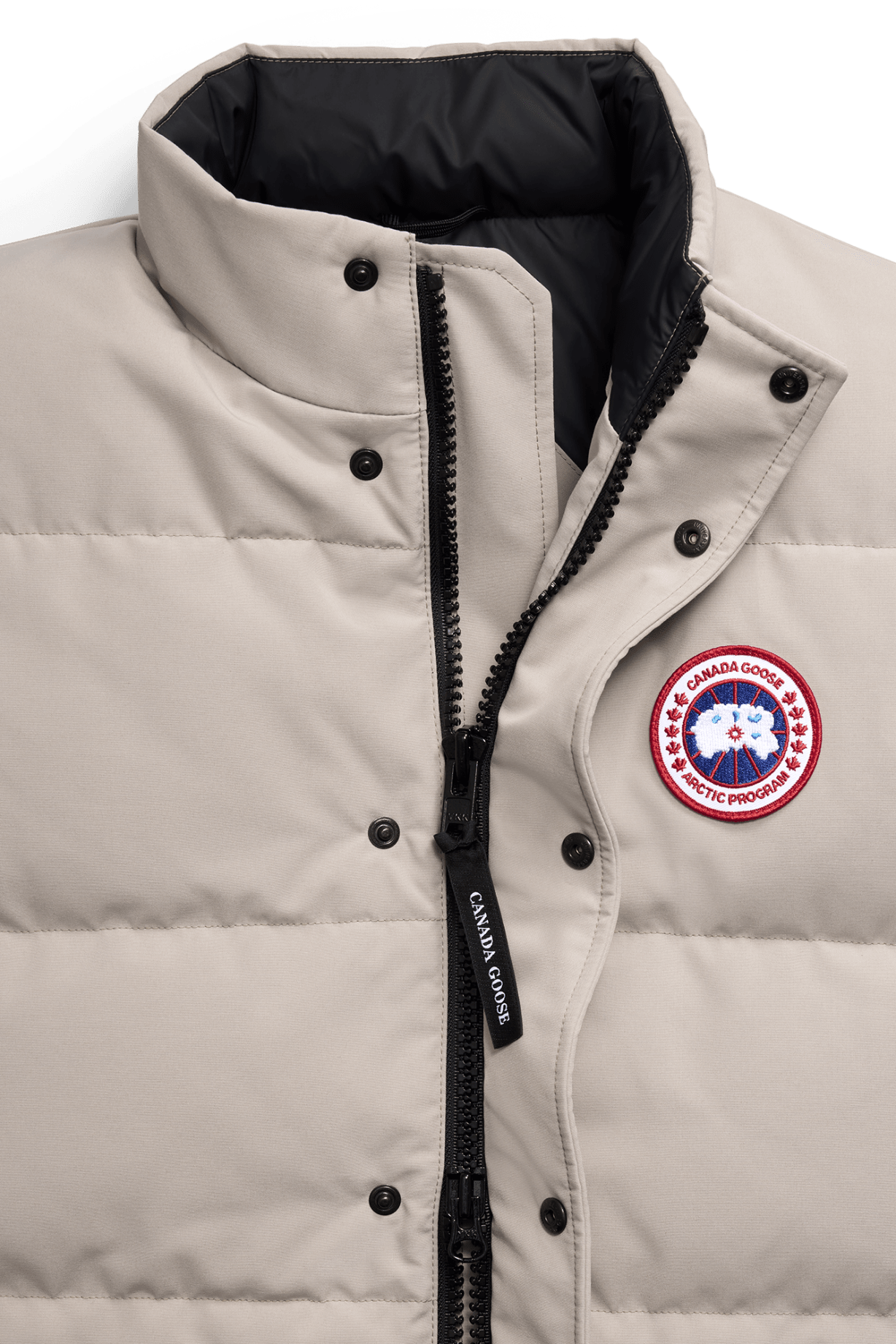 The CANADA GOOSE FREESTYLE CREW VEST 4159M in L-Grey is a functional, down-filled vest designed for durability and comfort. This classic style is cut in a regular fit and provides essential warmth without compromising freedom of movement. Visual features include a stand-up collar, a double zip and snap closure, and two generous patch pockets at the front. The iconic Canada Goose patch completes the design. This is a versatile investment for a sophisticated layering look, suitable for a variety of weather conditions. (70 words)