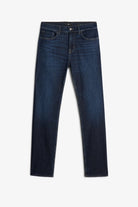 7 For All Mankind jeans with a modern, straight fit. A standard five-pocket silhouette. Zip fly with button closure. Signature woven brand label on the back pocket. Subtle, dark blue wash with light fading for a contemporary look.