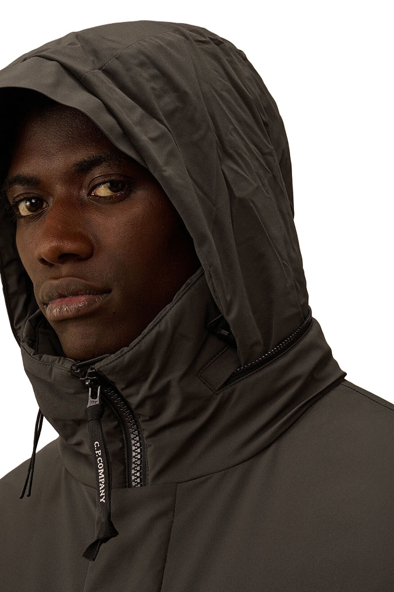 A signature element of CP Company is, of course, the goggles, which are incorporated into various garments, such as the goggle jacket , where lenses are integrated into the hood. The idea for the lenses originated from the design of the "Explorer Jacket," which was designed for a sports brand as a field jacket with four pockets and lenses extending from the collar. After further research, CP Company produced several prototypes throughout 1987. These prototypes, along with the gas masks used in the military, sparked a new idea among the designers: moving the lenses to the hood, similar to ski goggles. In contemporary designs, the lenses can still be seen in various garments.