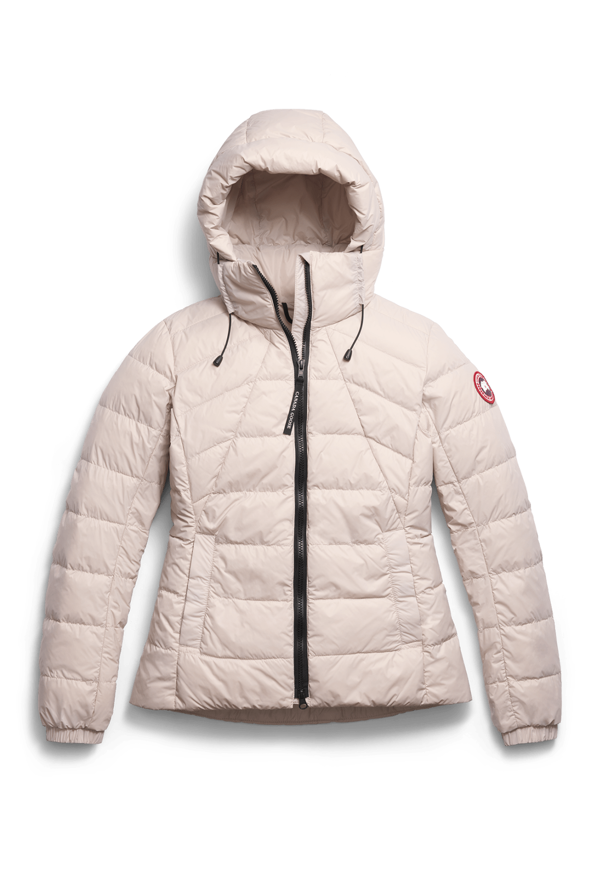 The Canada Goose Abbott Hoody is a functional jacket in a light pink hue. This jacket features a full-zip front and an integrated hood with an adjustable drawstring for extra protection. It also has two zippered side pockets for securely storing essentials.