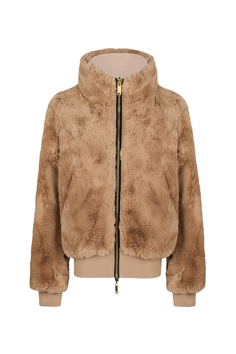 Bomber jacket with high-quality finishes. Regular fit. Features a detachable hood with drawstrings and snaps. Gold-tone front zip. Two zipped slit pockets, ribbed cuffs and hem for an optimal fit. Lining entirely in faux fur with a teddy-look. Small logo on the hood.