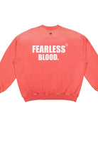 FEARLESS BLOOD sweater, designed for a relaxed fit. It features a crew neck and long sleeves. A large, white brand logo print on the chest and back. Ribbed cuffs and hem.