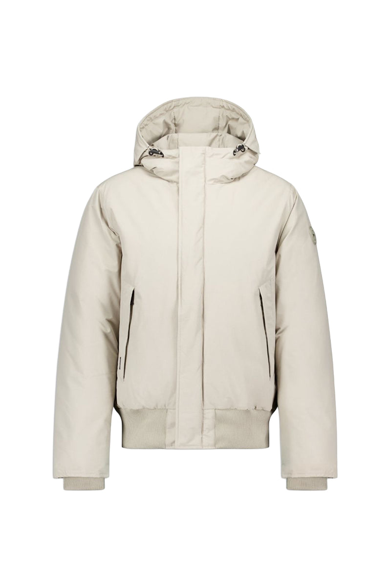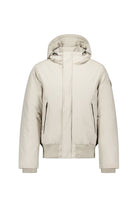 The Airforce Bomber Jacket is designed for a timeless look. It features a classic bomber style with elasticated ribbing at the cuffs and hem, ensuring a comfortable fit. It comes in a grey hue and features a generously sized hood with a drawstring for added protection from the elements. The design includes two zippered side pockets for secure storage and a subtle brand emblem on the sleeve. The fabric has a smooth finish, making the jacket suitable for both everyday wear and special occasions.