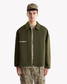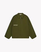 The Saint Blanc INTERLOCK COACH JACKET GREEN is a modern men's jacket from the Saint Blanc brand. This deep green jacket is a contemporary interpretation of the classic coach jacket. The design features a traditional collar and a full-length zipper. The front is minimalist, featuring small white Saint Blanc lettering on the chest.