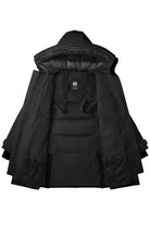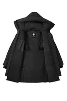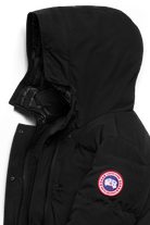 This Canada Goose parka offers a rugged yet stylish look. It's black and features a hood for extra protection from the elements. The jacket has a straight fit and is finished with quilted details for a classic look.
