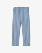 Lacoste jogging pants in a blue design with a subtle all-over print. The pants have an elasticated waistband for a comfortable fit. The iconic Lacoste logo is subtly placed on the front. These pants are part of the Loungewear collection and stand out for their versatile style. See the photos for more details about the color and design. Ideal for combining with various garments for a casual look.