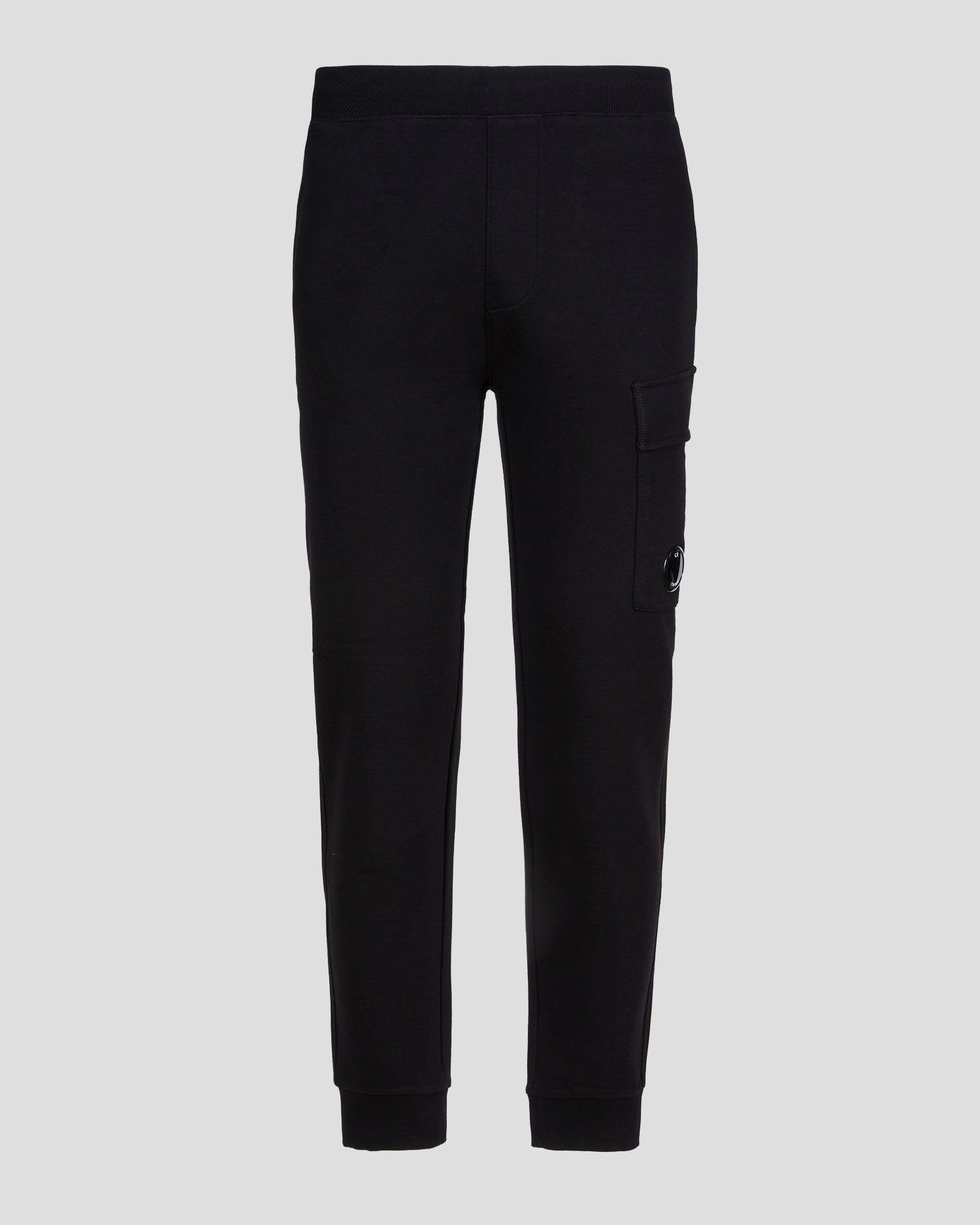 CP COMPANY JOGGING PANTS DIAGONAL RAISED FLEECE CARGO SWEATPANTS BLACK