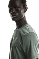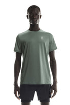 This On Running T-shirt comes in a stylish shade of green. It features a classic T-shirt design with a crew neck and short sleeves. A subtle logo is visible on the front, giving the design a minimalist touch. The fabric feels comfortable and is suitable for a variety of casual and sporty occasions.
