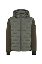 Peuterey's functional jacket with a modern, sleek design. It features a quilted body and contrasting sleeves. The jacket has a double-action front zipper for easy access. It also has an adjustable hood for added weather protection. Ribbed cuffs ensure a snug fit and keep the wind out.