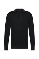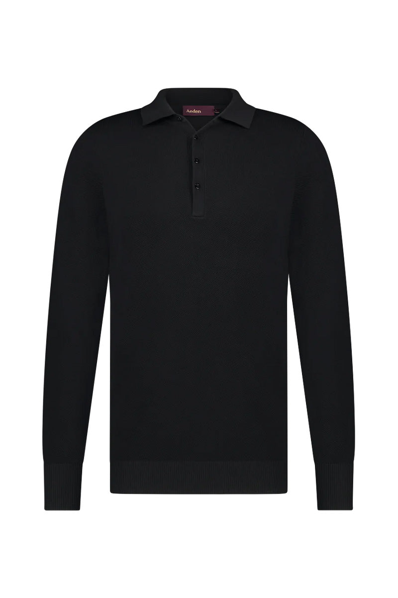 Aeden polo shirt with a classic fit. It features a three-button collar and long sleeves with ribbed cuffs for a sleek finish. Subtle brand print on the chest. Suitable for a variety of occasions, it comes in a versatile black color.