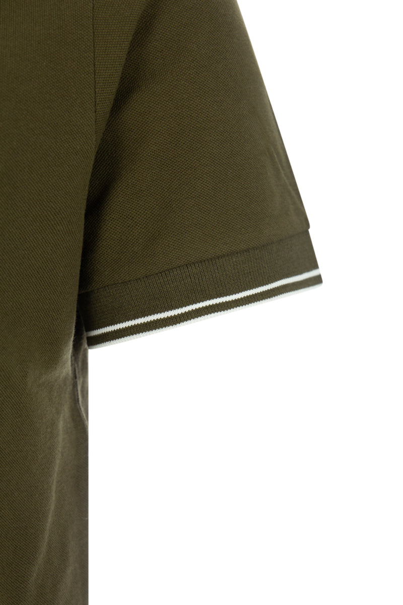 Men's Stone Island polo shirt, 79152C18, in V0058 Olive/Green. The polo shirt has a slim fit and is made of durable stretch piqué cotton, making it feel light against the skin and ensuring optimal comfort.