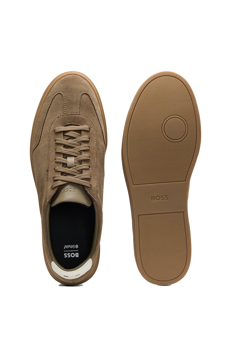 Casual lace-up shoes from BOSS BLACK. These shoes have a classic look with subtle branding. They feature tonal laces and a sturdy rubber sole for extra grip and comfort. Perforated accents add a modern touch. Each shoe features a removable insole.Color: light brown.