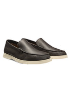 Modern loafers from BOSS BLACK designed with a timeless appeal. The shoes come in a stylish dark brown color with a subtle textured material. They feature a supple, laceless design, contributing to an effortless, polished look. The interior is carefully finished for optimal comfort, while the beige sole provides a contemporary contrast. The BOSS logo is discreetly incorporated into the sole, adding a refined touch. These loafers easily complement both business and casual outfits.