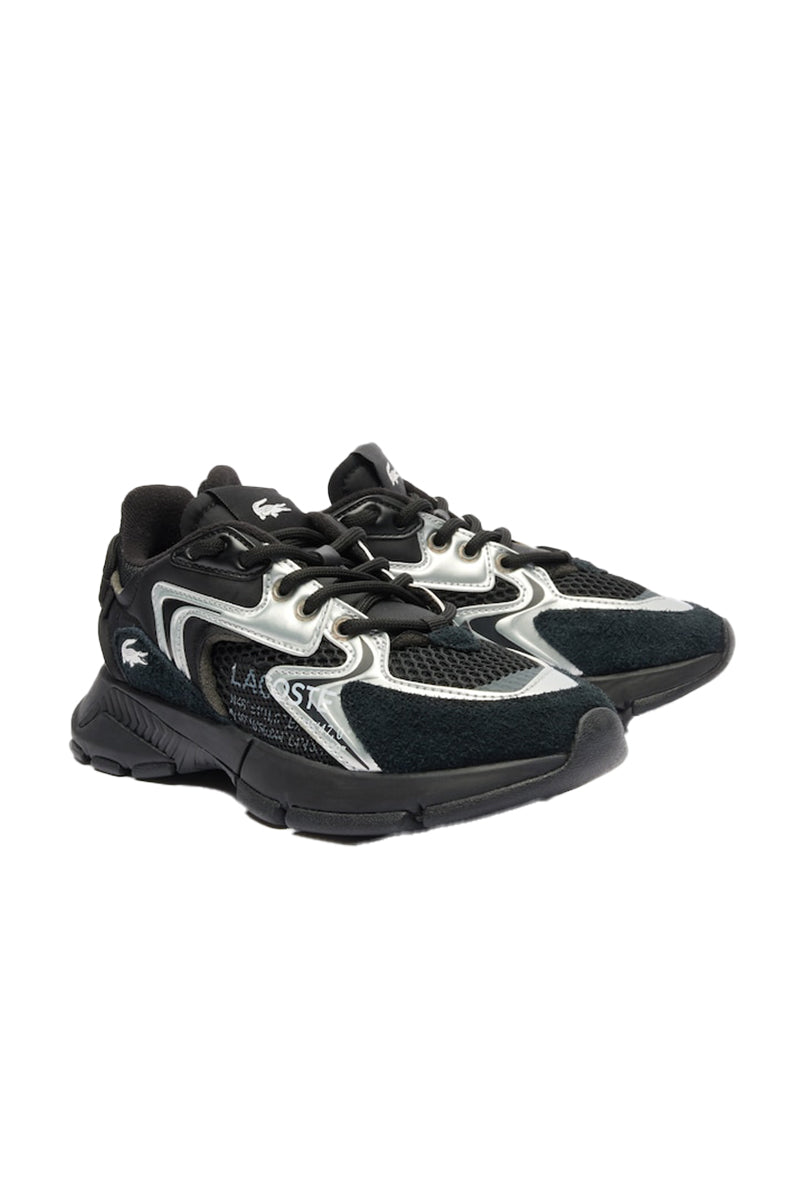 Meet the Lacoste SHOES 747SMA0105312, a robust black trainer crafted from a combination of textile and suede. This sporty sneaker features a modern running silhouette, breathable mesh panels, and striking silver accents on the upper. The sturdy sole construction ensures optimal comfort and guarantees a dynamic, modern look.