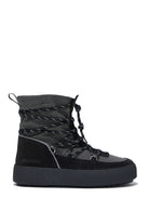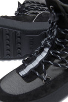 Men's Moon Boot shoes, Mtrack Citizen, in black. These versatile boots have a unique and fashionable look. According to Moon Boot, the boots are 100% water-repellent and feature metal details. The color palette is inspired by the colors of the moon. Finally, the shoe is made of polyester, leather, and rubber.