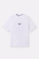 Casual T-shirt with a straight fit. Signature logo on the chest and detailed print on the back. Round neckline and short sleeves. Color: white with a contrasting print.
