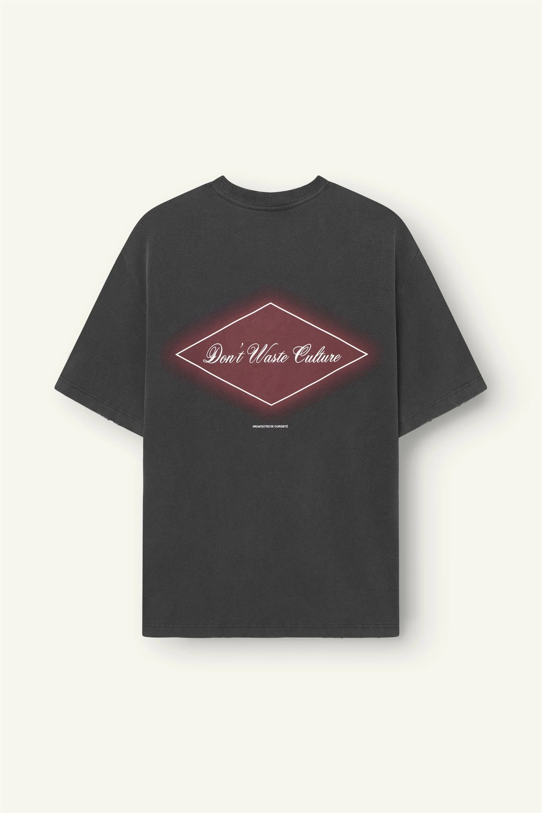 This relaxed-fit T-shirt offers optimal comfort. The design features a round neckline and short sleeves. The back features a striking print of the "Don't Waste Culture" logo within a geometric frame. This shirt has a classic look with a contemporary twist.