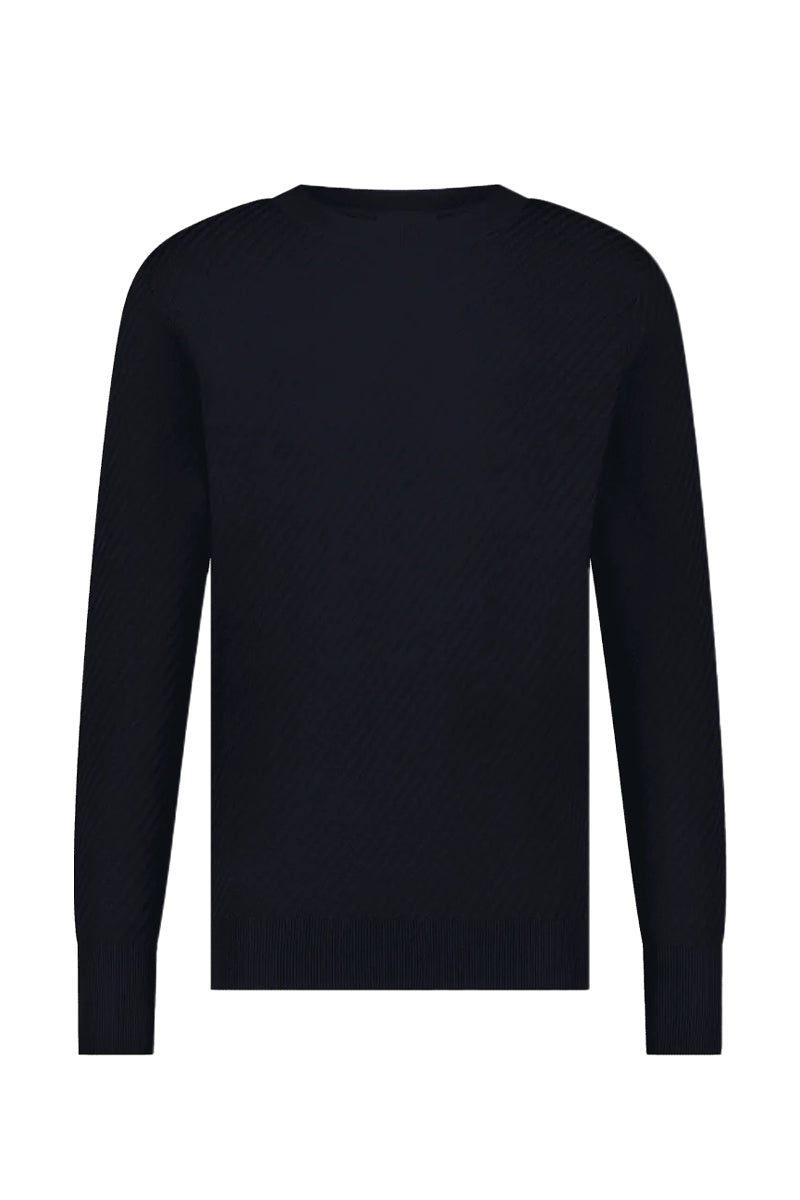 Crew neck sweater in striking dark blue. Standard fit. Ribbed cuffs and hem. The subtle AEDEN logo is embroidered on the front. Suitable for a variety of occasions.