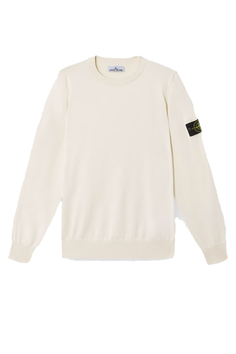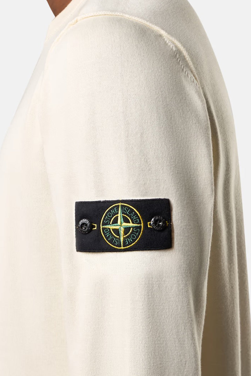 Regular-fit sweater with a round neckline. Signature Stone Island logo on the left sleeve, fastened with buttons. Ribbed cuffs and hem for a neat finish. Designed for a versatile look. Available in Off White.