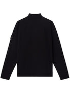 Stone Island sweater with a front zip closure. A sleek, minimalist neckline. A logo patch on the sleeve. Stitched hem and cuffs for a neat finish. Brushed interior for extra comfort. Longer sleeves and a straight fit.