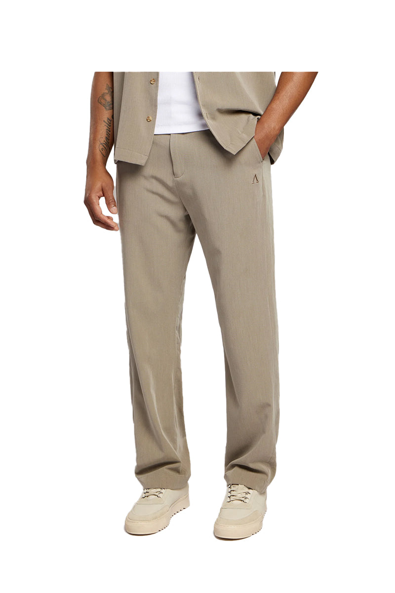 Straight-fit trousers with a classic waistband. Features side pockets and a back pocket. Subtle logo on the left leg. Structured zip and button closure. Designed for everyday comfort with a modern look.
