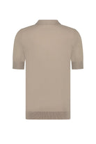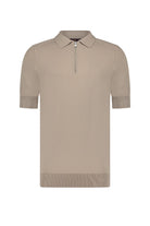 A classic polo shirt with a modern twist from AEDEN. It features a zipper at the neck for a contemporary look. The polo shirt has short sleeves and a subtle collar. The color is a warm, neutral brown that's versatile to wear. Note the finely finished cuffs and hem for a polished finish.