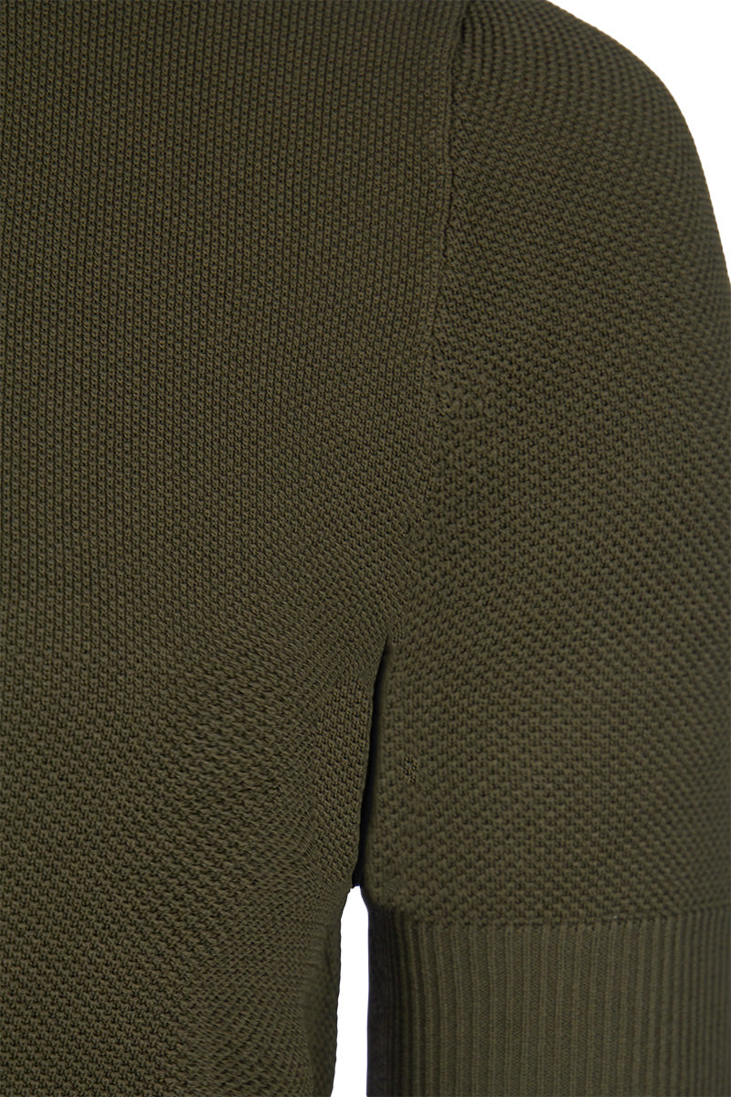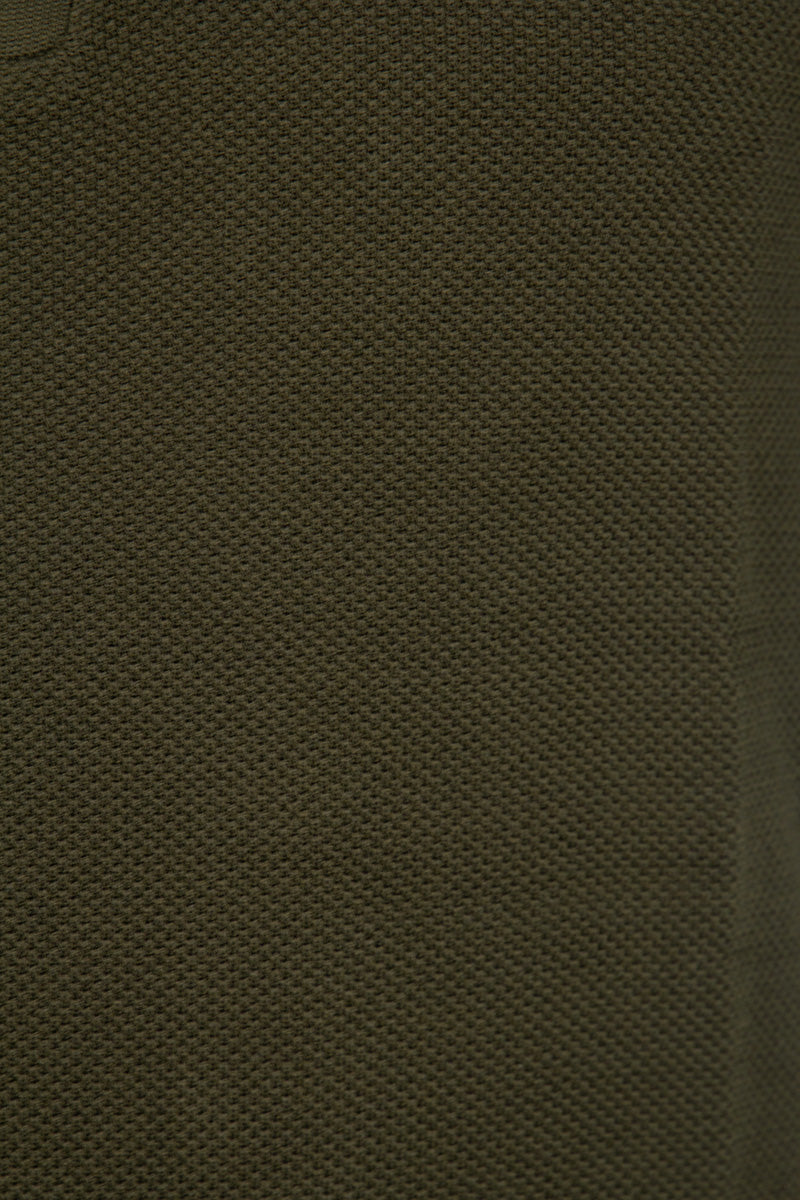 The Bruce men's regular-fit polo shirt, in green, from Aeden. Made from 100% organic cotton with non-toxic dyes and featuring a high-quality stitch finish, it adds a stylish touch. It features a textured design, a classic collar, and ribbed cuffs at the waist and sleeves. GOTS-certified, a certification developed to further certify organic cotton and other organically grown fibers into sustainable garments or textiles.