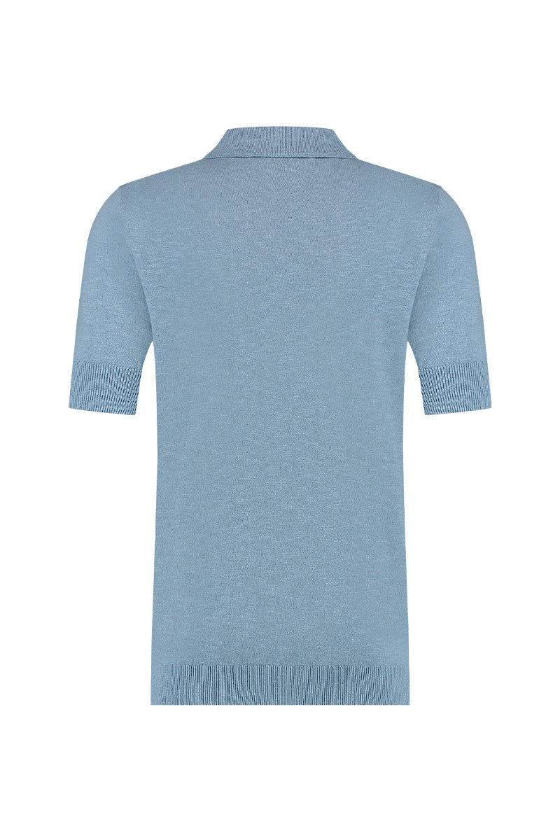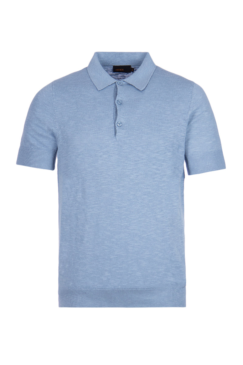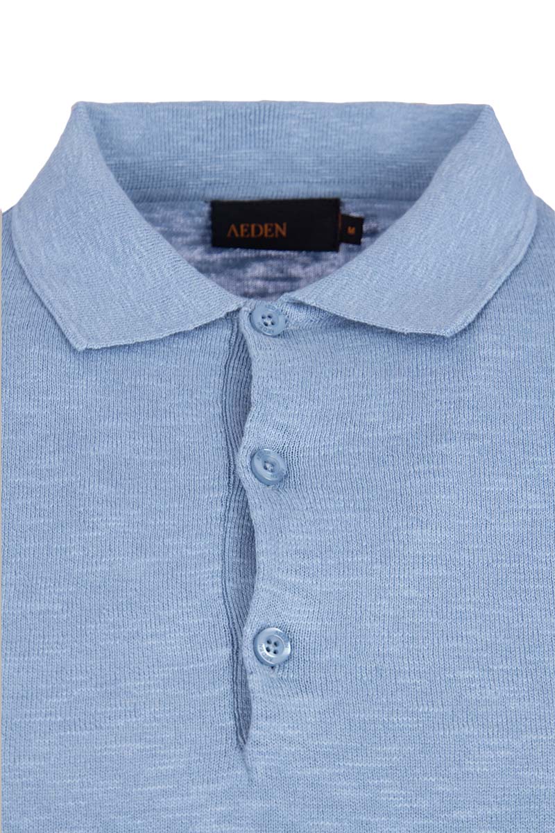 Men's Lewis polo shirt, light blue, from Aeden. The polo has a regular fit and is made of 53% linen and 47% cotton for optimal comfort. Linen is known for its soft, moisture-wicking, and durable properties, and it feels cooler than cotton. The polo features a classic button-down collar and wide ribbed cuffs and waist.