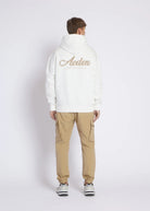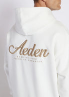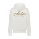 Relaxed-fit sweater with a roomy hood. It features a striking embroidered Aeden logo print on the back. Ribbed cuffs and hem for a neat finish.