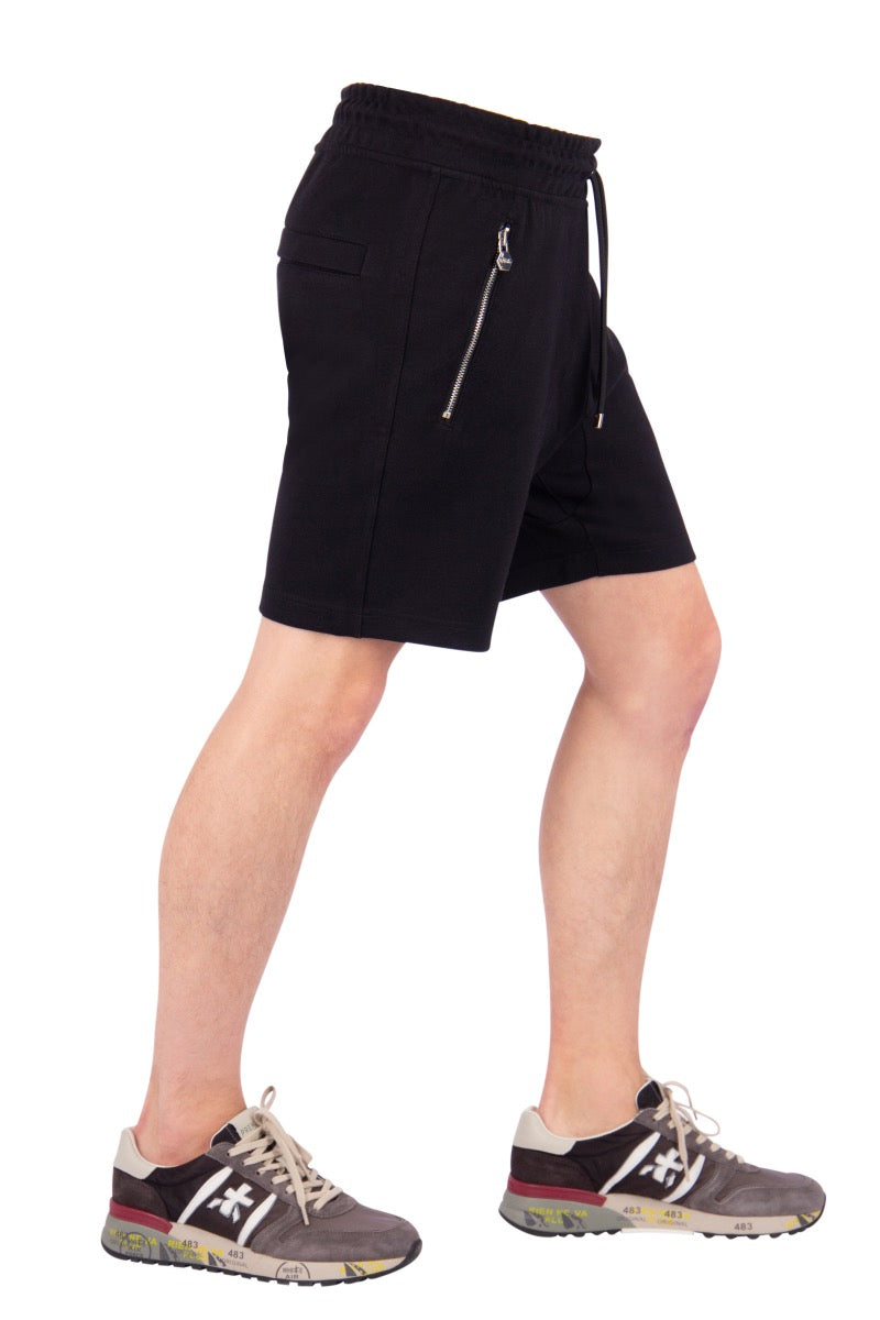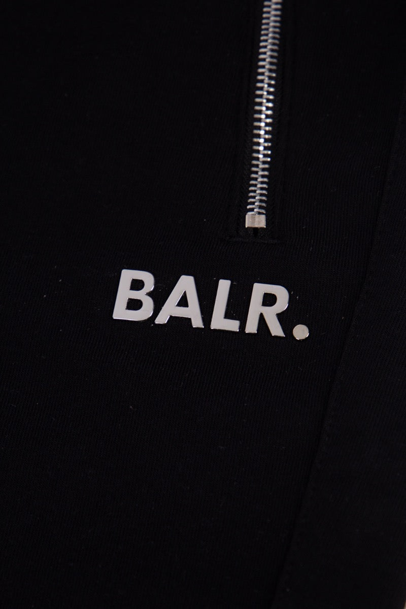 Black shorts from the brand BALR . Made of an extra-heavy cotton blend, they feature three zippered pockets. A drawstring waistband and the familiar BALR. logo are on the right leg.