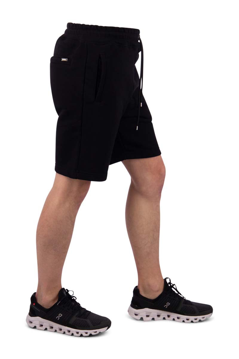 Men's BALR. shorts, B1431.1040, in Jet Black. The BALR. shorts feature the BALR. logo on the leg and drawstrings for easy size adjustment. Finally, the shorts have two regular side pockets and one back pocket. The back pocket is finished with a small silver logo plate.