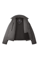 The Canada Goose Lodge Coach Jacket in D-grey offers a streamlined look with a comfortable fit. It features a classic collar and a snap closure at the front. Discreet zippered pockets inside and out offer practical storage. A subtle logo is featured on the left sleeve. Designed for functional wear and versatility.