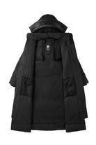 A long parka with a modern look. Straight fit. It features a padded hood and a sturdy front zip. Two slanted side pockets with zips. The iconic logo badge is on the sleeve. Inside pockets offer extra storage. The jacket has elasticated cuffs for a snug fit.