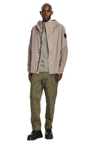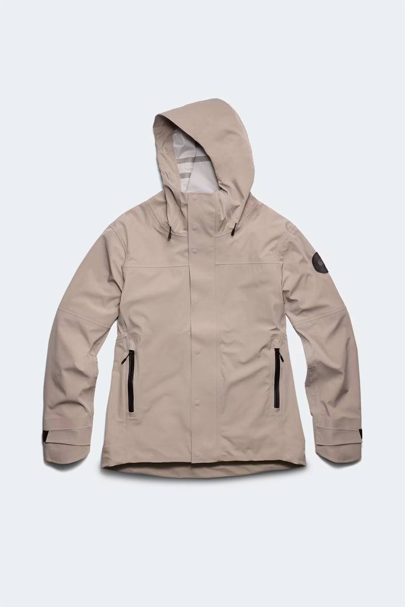 Functional raincoat in light gray from Canada Goose. The design features an adjustable hood and waterproof zippers for extra weather protection. This jacket has two functional side pockets with zippers. The Canada Goose logo is subtly embossed on the left arm. The jacket offers a modern fit and is designed with ventilation openings for added breathability.