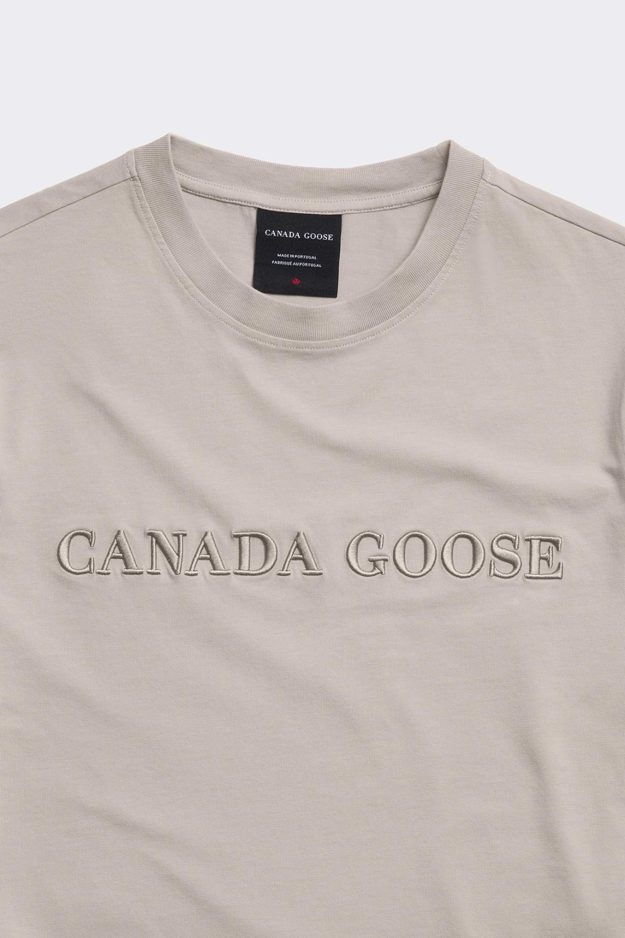 A gray T-shirt from Canada Goose, featuring a classic crew neck and short sleeves. The design features the embroidered Canada Goose logo on the front, adding subtle branding. The fit is standard and the entire piece is finished with fine stitching along the edges. This T-shirt is a great addition to a casual wardrobe and is easy to combine with various styles and layers.Product information