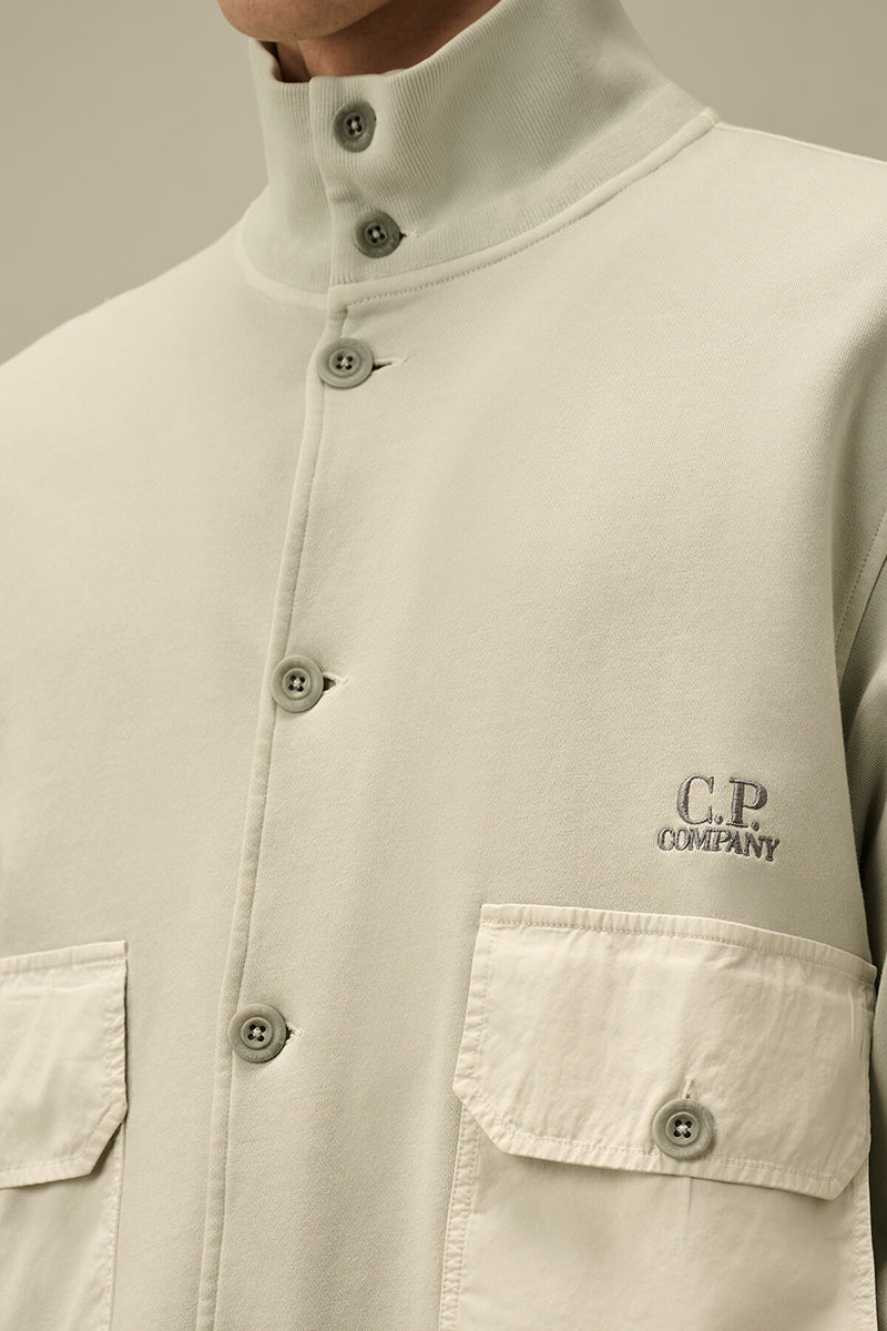 A modern sweater with a slim fit. It features a high stand-up collar with a button closure. Two spacious flap pockets on the front with button closures offer practical storage. Subtly embroidered brand logo on the chest. Ribbed cuffs and hem for a refined finish.