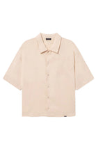 Short-sleeved shirt in a subtle beige hue. This casual piece features a classic collar and a straight fit. It features a functional chest pocket and a button closure at the front. The detailed logo on the hem underscores the minimalist style.