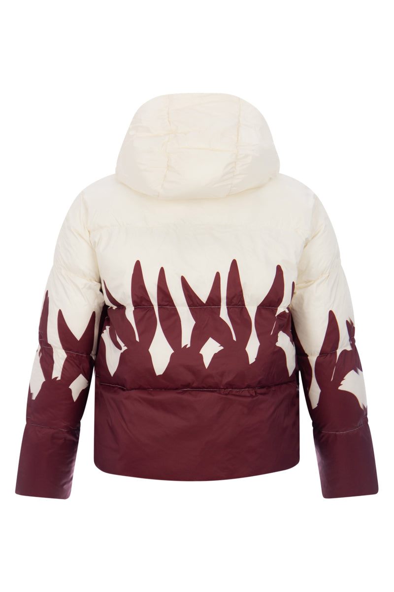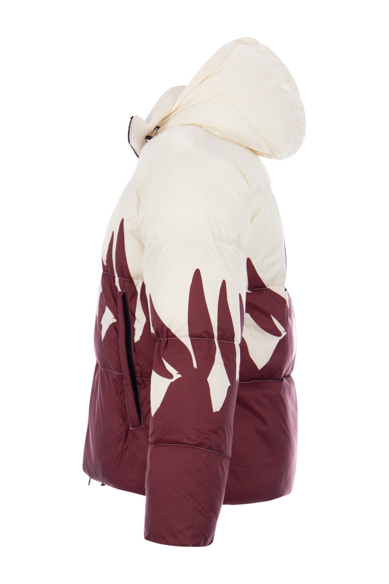 Padded men's jacket J010-6409 from Iceberg. The S1X1 White jacket features the iconic Bugs Bunny ears. The jacket has a two-way zipper for extra comfort and flexibility, an adjustable hood, and two front pockets.