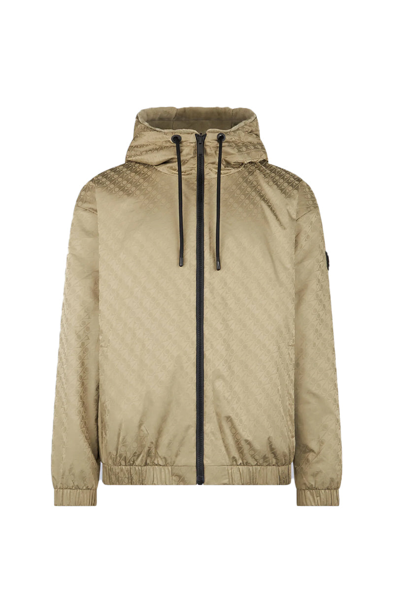 Stylish jacket with a modern look. It features a hood with drawstrings for adjustable protection. The jacket features a subtle all-over print that adds visual depth without being overpowering. Elastic cuffs and hem ensure a secure fit. There are zippered side pockets for secure storage of personal items. The brand logo is discreetly placed on the left arm.