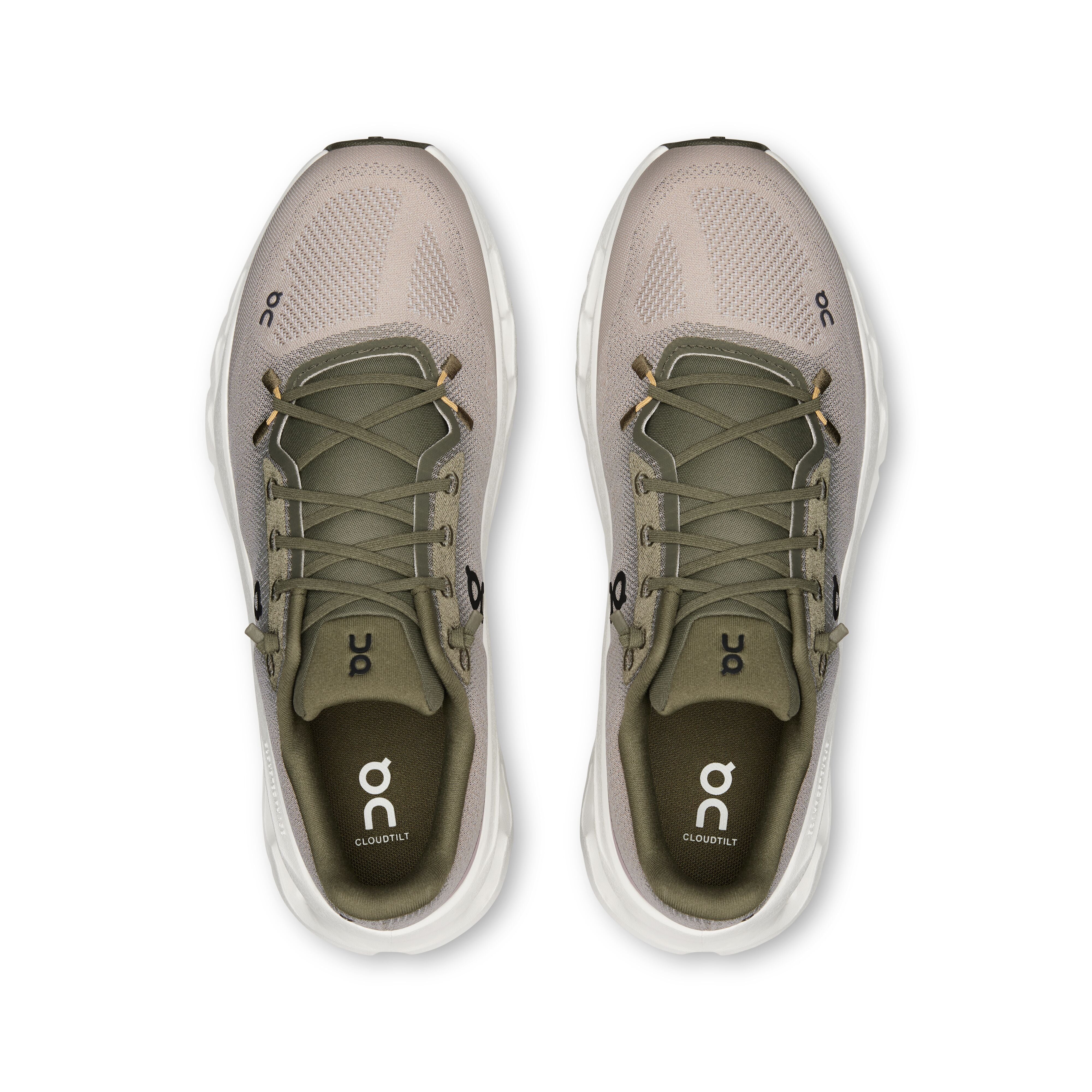 The ON RUNNING CLOUDTILT GREEN SHOES for men are the latest generation of Swiss technology from On Running . This men's model (SKU: 71886) combines contemporary design with a focus on maximum cushioning. The upper features subtle green and beige hues. Its signature feature is the extra-thick white midsole, which features the signature, hollow Cloud elements for a distinctive look.