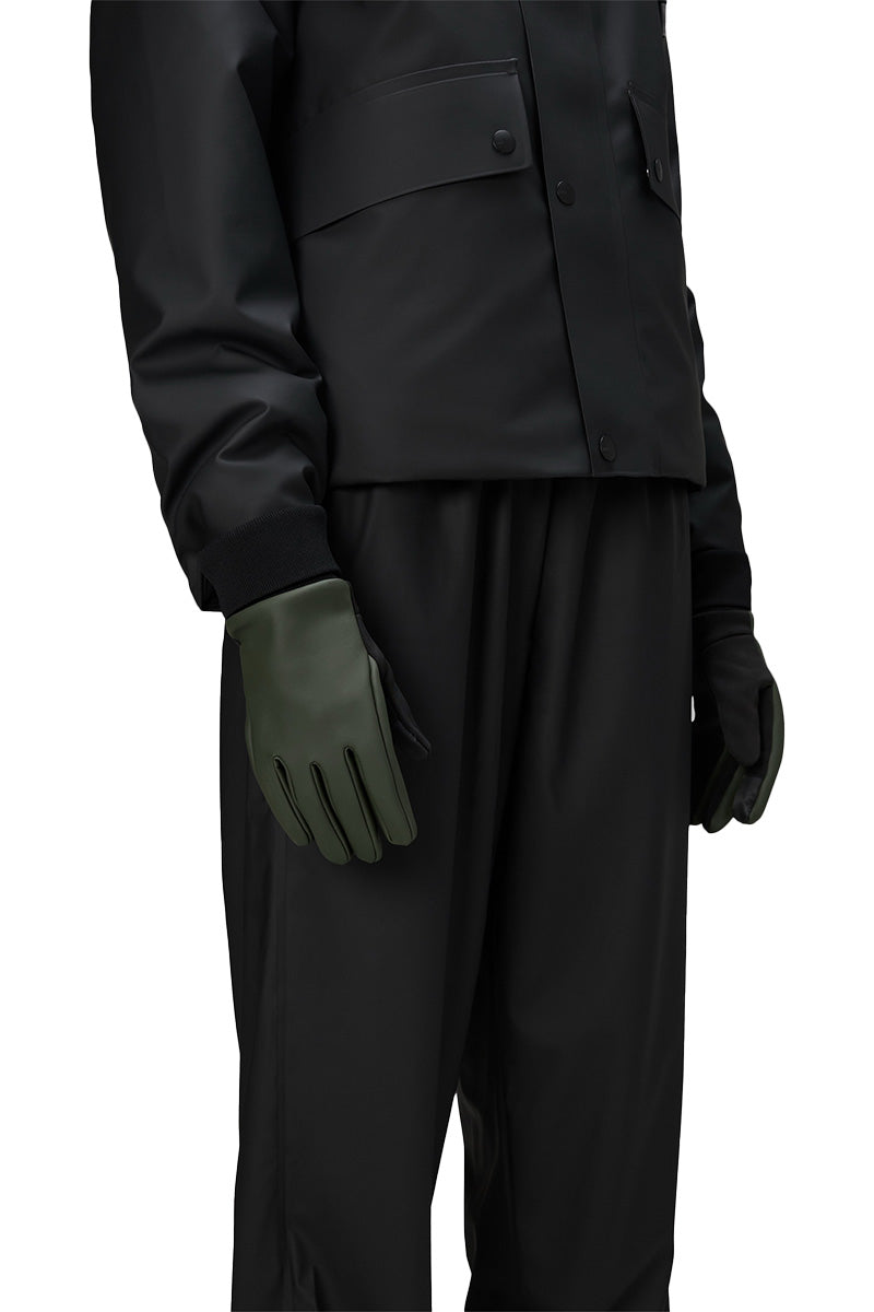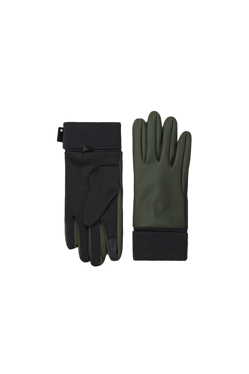 These RAINS gloves are designed to combine functionality and style. Their dark green color gives them a sleek, modern look. They feature elastic cuffs for a secure fit and extra comfort. The brand logo is subtly embossed on the side, adding to the minimalist design. These gloves are a practical and stylish addition to any winter wardrobe.