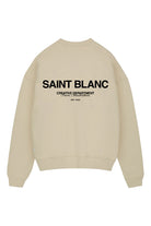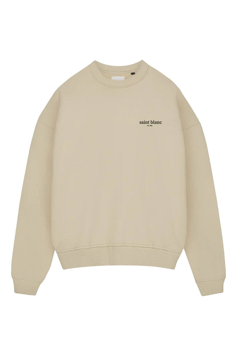 This Saint Blanc sweater has a relaxed fit and offers comfortable freedom of movement. It features a ribbed crew neck and ribbed cuffs and hem. The design includes a subtle "Saint Blanc" logo on the left chest and a large brand emblem on the back. Perfect for casual occasions.