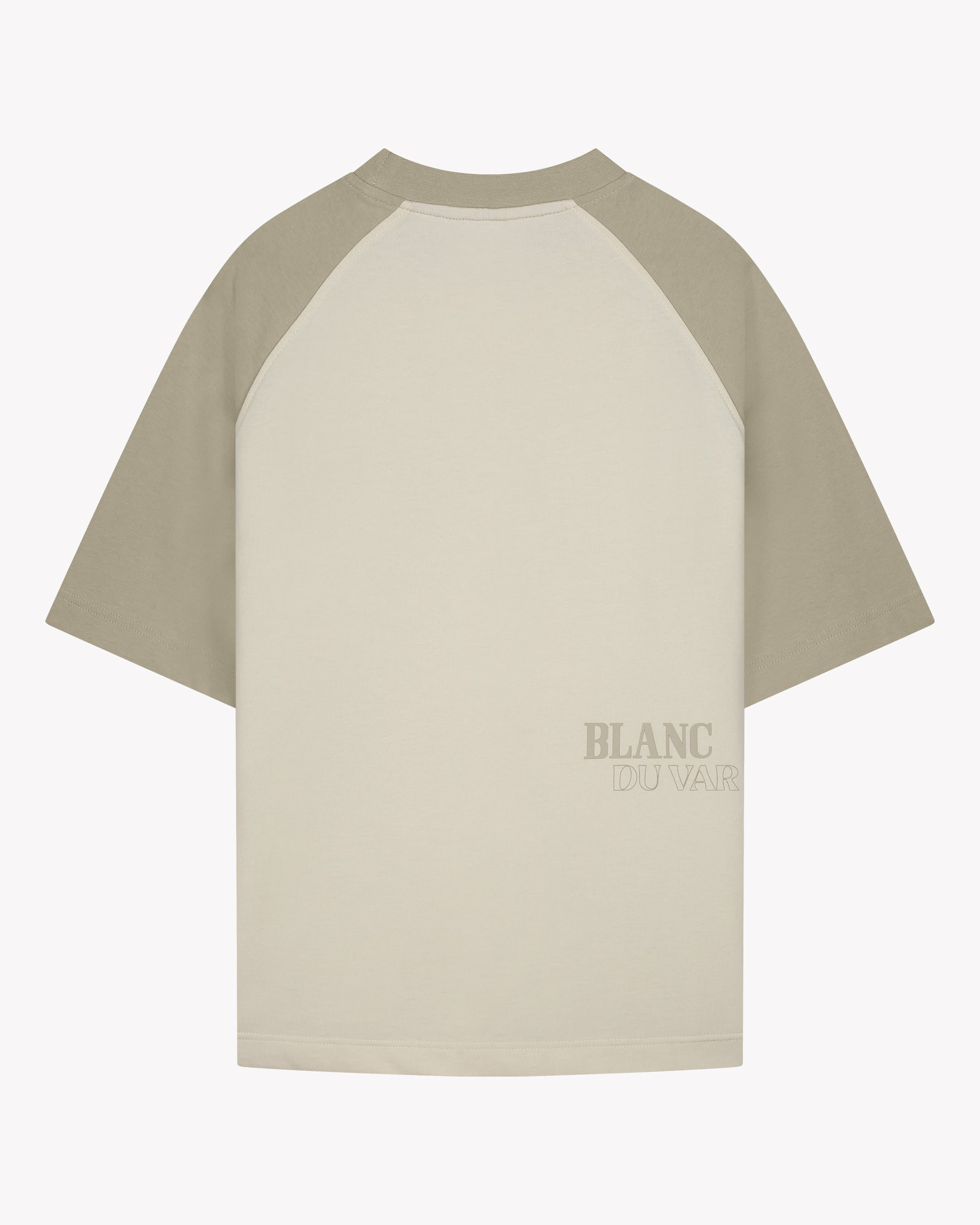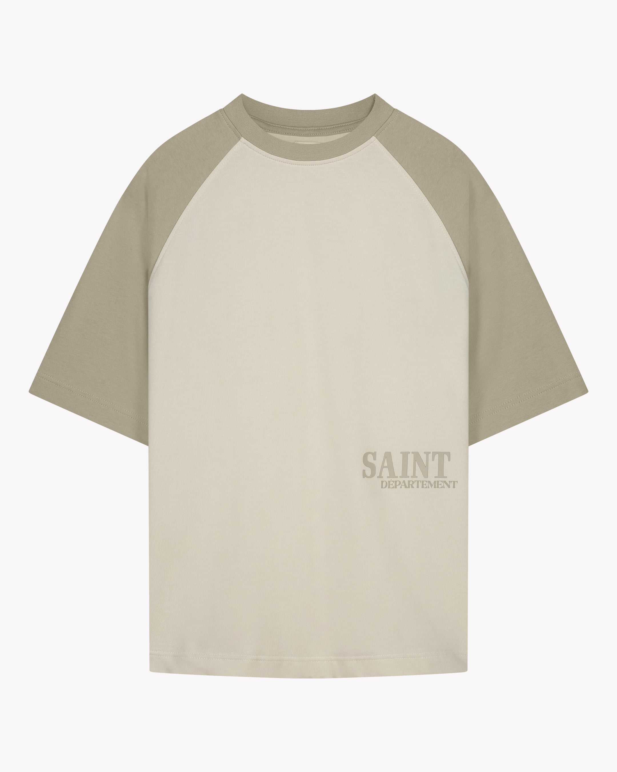 Saint Blanc T-shirt Department Off White Raglan T-shirt with contrasting sleeves. Regular fit. Round neckline. Subtle logo print on the front and back. Short sleeves.