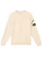 Stone Island sweater in off-white. Regular fit. Ribbed round neckline. Long sleeves with a brand patch on the left arm. Ribbed cuffs and hem. Minimalist design without prints.