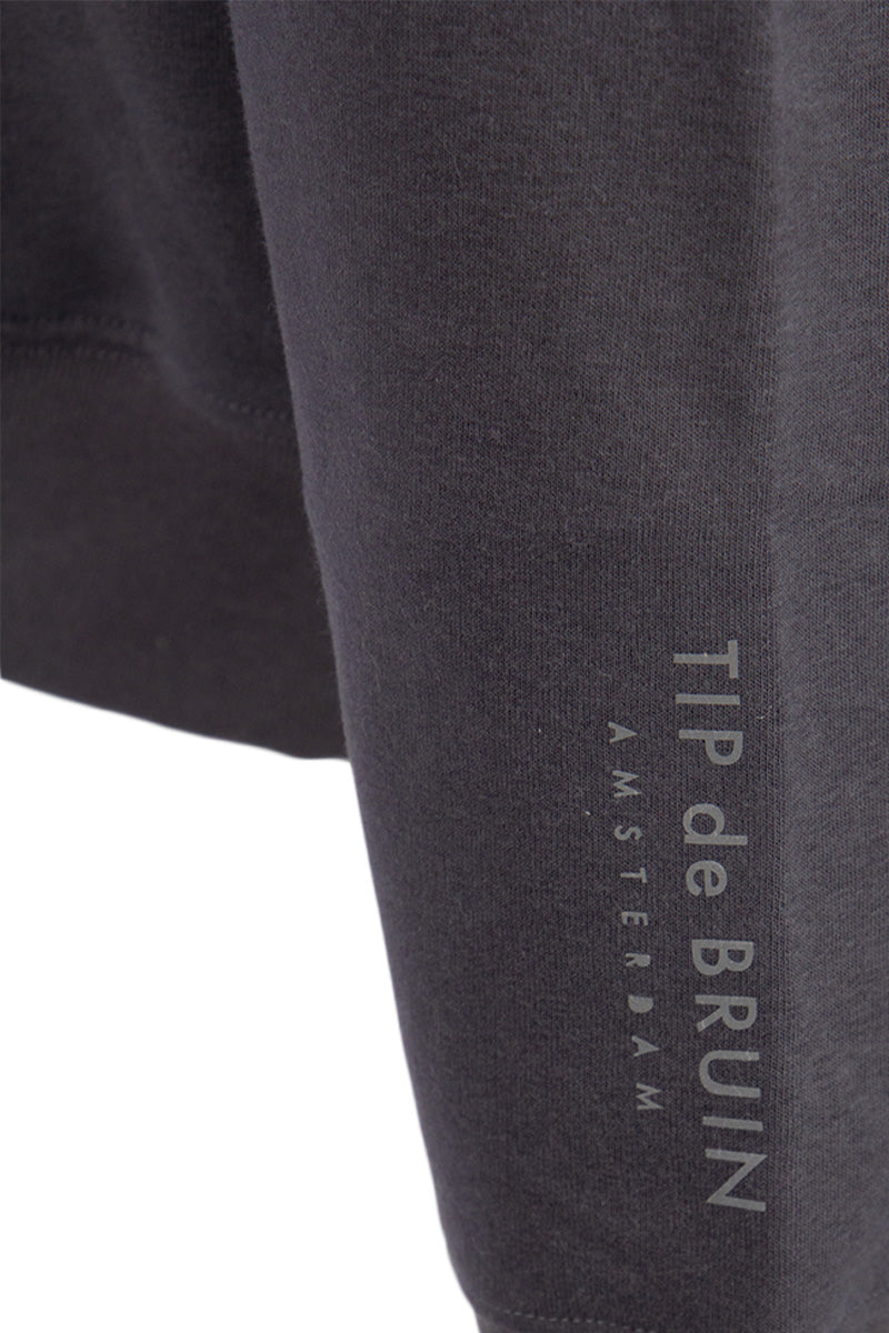 Unisex TIP badge hoodie, in dark gray, from our own brand, Tip de Bruin Amsterdam. Made of 80% cotton and 20% polyester with a warm fleece lining for extra comfort. The exclusive collection of Tip de Bruin merchandise has been expanded with comfortable hoodies. The hoodies have a stylish fit and are of high quality! The embroidered logo patch is of good quality and is machine washable according to the care label. The new hoodie features the popular Tip de Bruin logo embroidered on the chest and a kangaroo pocket with plenty of room for your phone and wallet. The hoodie also has a subtle reflective Tip de Bruin print on the right sleeve. This basic logo patch hoodie is the perfect addition to your wardrobe!