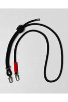 Accessory rope strap with an 8 mm diameter. Suitable for a wide range of applications. Features adjustable length and sturdy metal clasps for added security. Compact design for easy transport and versatility. Subtle brand label attached to the side.