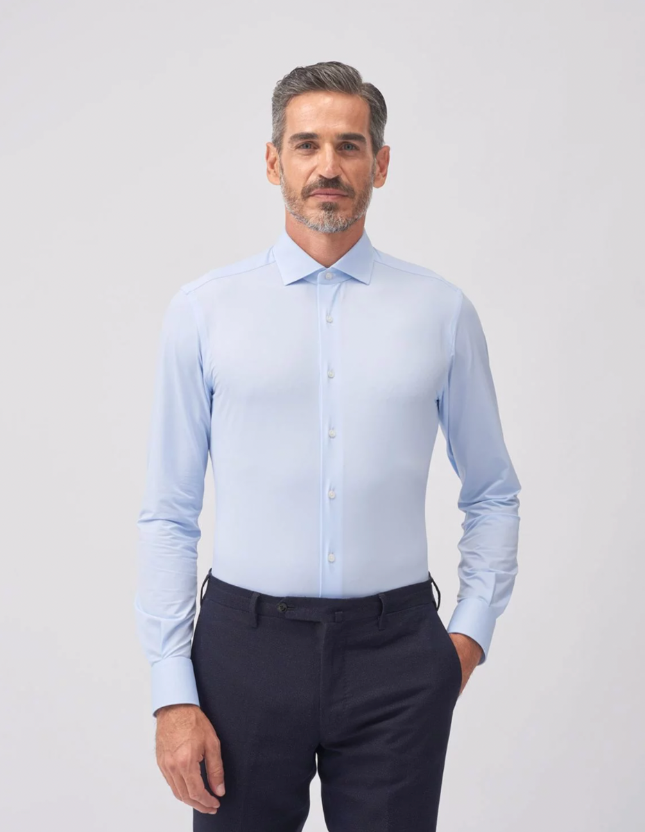 Formal shirt with a classic collar and long sleeves. Slim fit. The shirt features subtle buttons down the front. Solid color. The cuffs are standard and adjustable with buttons. Ideal for business occasions.