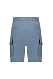 Relaxed fit shorts designed with a practical approach. Features an elastic waistband with an adjustable drawstring for custom comfort. Equipped with side cargo pockets and back flap pockets for utility and storage. Displays a subtle branded tag near the waist. Constructed with attention to detail in a versatile, light blue hue.